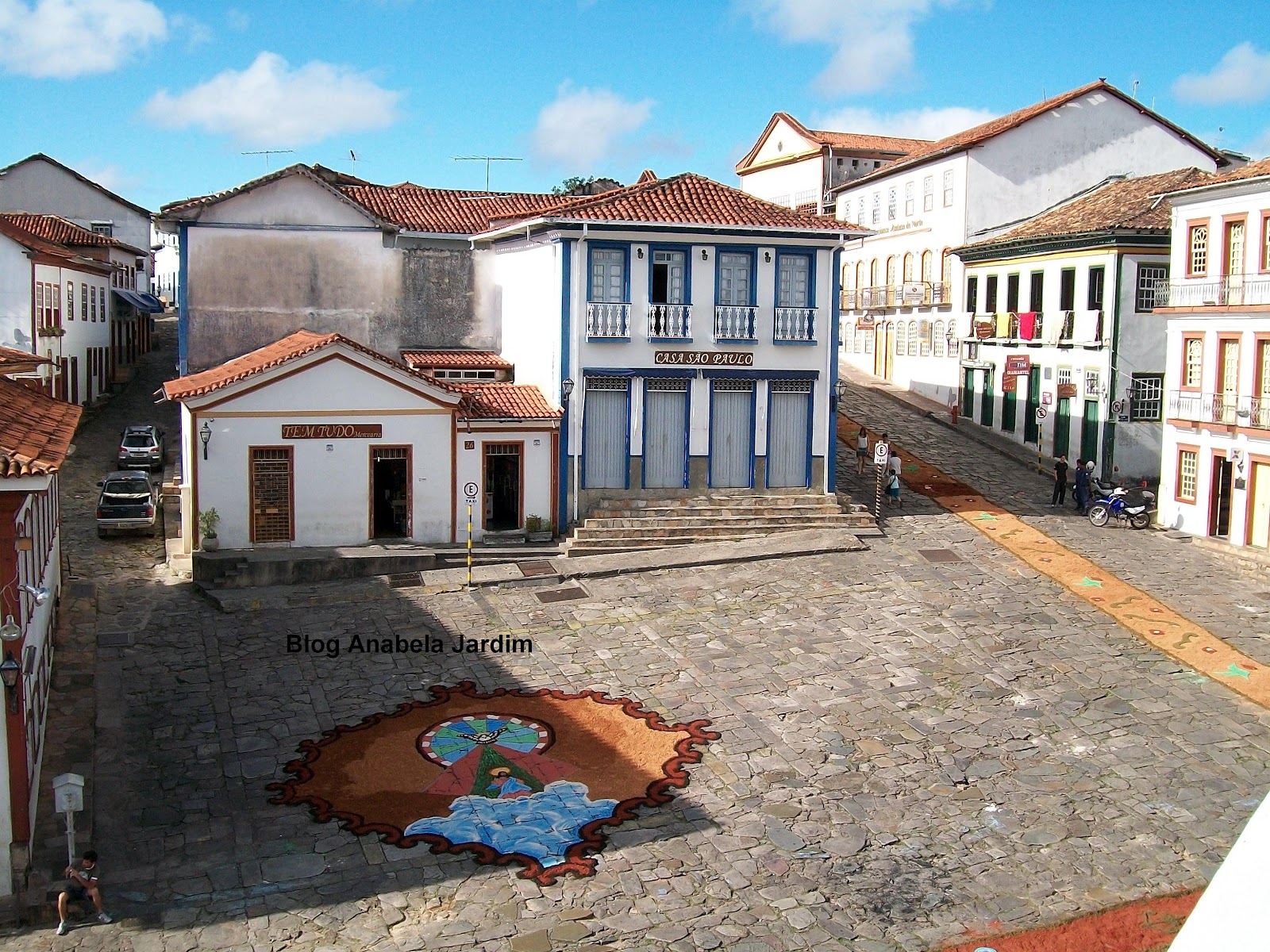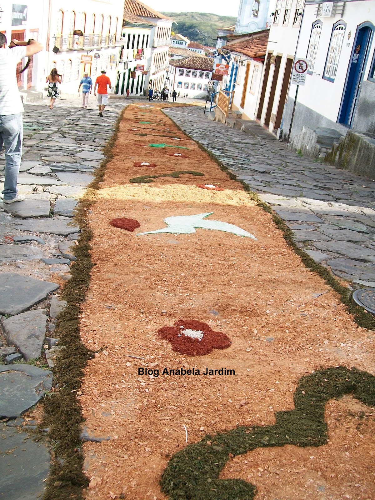 Assim posso definir o envolvimento que há muitas gerações une todos os anos a população sabarense na noite que antecede o dia de Corpus Christi. Crianças, adultos e idosos preparam à noite os maravilhosos tapetes por onde irá passar na manhã do dia seguinte a procissão com o Santíssimo Sacramento, que em Sabará, uma cidade do século XVIII, conserva ainda boa parte do simbolismo religioso trazido pelos portugueses, não dispensando elegância e beleza na decoração das ruas e das casas por onde passa o cortejo.