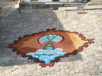 E o tapete colorido vai sendo admirado e fotografado, enquanto indica o caminho para o largo principal da cidade.