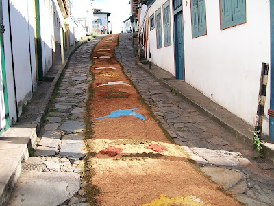 Tapetes coloridos para a procissão da ressurreição em Diamantina