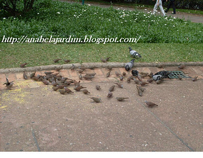 Essa foto tirei na Praça da Liberdade, do lado de um banco com pessoas assentadas, enquanto sem medo algum as pombas se alimentam de canjiquinha que alguém para elas levou.